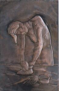 Avanti Trentennale Titolo: LA STIRATRICE Insegnamento: Arte del cesello e dello sbalzo - Docente: Oliveri Salvatore Allievo esecutore: Classe 2A, Crivaro Salvatore Descrizione: Riproduzione di un'opera di Picasso (La stiratrice) Tecnica: sbalzo su rame con tecnica mista Realizzazione anno scolastico 1999/2000 |