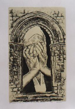 Avanti Titolo: PREGHIERA Insegnamento: a.a. xilografia/calcografia - Docente: Bucci Romano Allievi esecutori: lavoro di gruppo di alunni del 3° e 4° B calcografia Descrizione: Portale dell'Abbazia florense con l'immagine di una donna con abito sangiovannese Tecnica: calcografia a vernice molle stampata a torchio Realizzazione anno scolastico 1999/2000 |